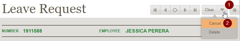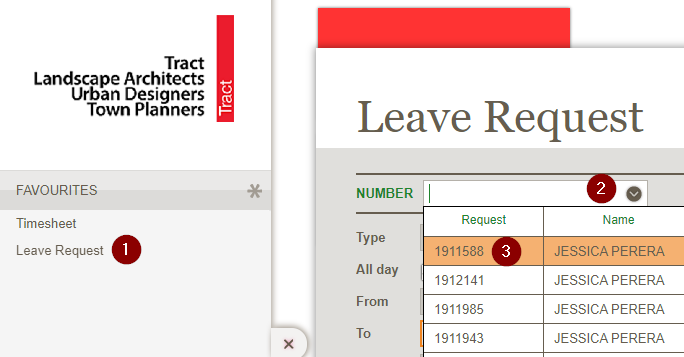 - Open the leave request by selecting the Number drop down and double clicking the request (figure 1, below)